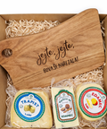 Ta darilni paket je ustvarjen za sproščena druženja, smeh in polne krožnike. V njem najdete vse, kar potrebujete za pravi domači sirni narezek.