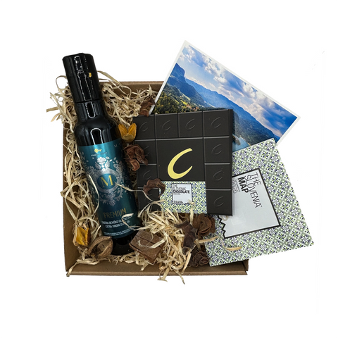 Darilni paket Sečovlje z izbrano vsebino, primeren za najrazličnejša obdarovanja ali poslovne priložnosti.
