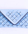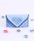 Ročna torbica modre barve, odpira se na magnet, bombažna podlaga.